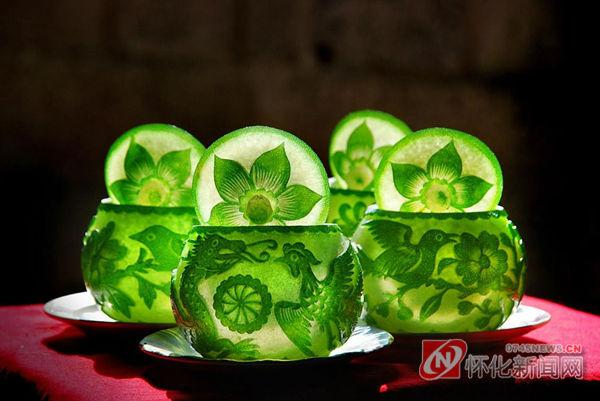 雕花蜜饯工艺它源于五代末年,世代相传,流传至今已有一千多年,是古代雕花食品的一种,历史悠久,成为靖州民间历代上贡朝廷的御品。它最先由苗族的“万花茶”而来,进而演变成为现在的“雕花蜜饯”。雕花蜜饯是民间社会的产物,更是百姓生活的写照,是民族文化心理和不同世代积淀的独特表现方式。具有独特的艺术形式和丰富的苗侗文化内涵。经过文化部和澳门文化局的遴选,雕花蜜饯项目被文化部外联局选中将去参加“2019祈祥纳福——山西省和湖南省年画艺术展”展卖活动。