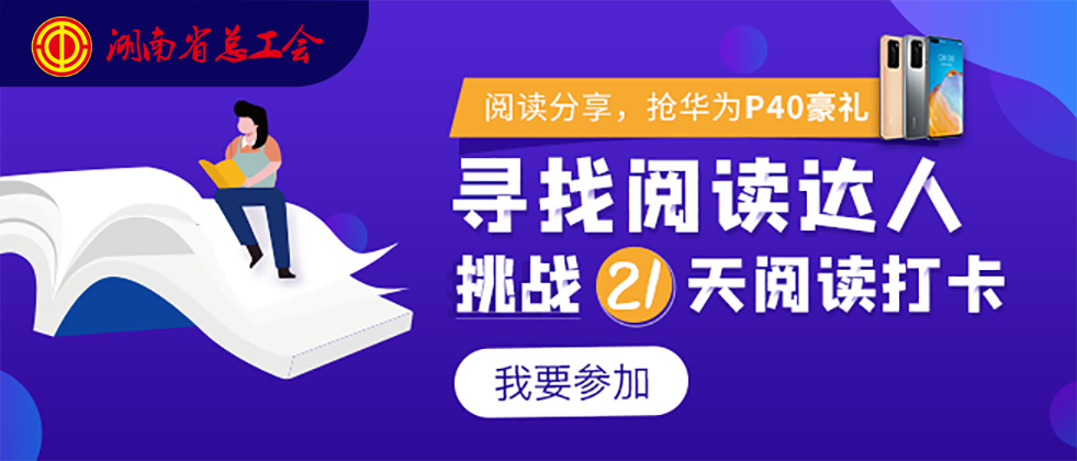 2.想了解关于“湘悦读·工力量—2020 年全省职工主题阅读活动”更多详情,可关注“湘工 e 家”、“芙蓉天地”微信公众号或“湖南省总工会”官方微博账号。