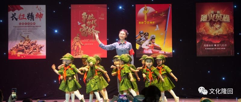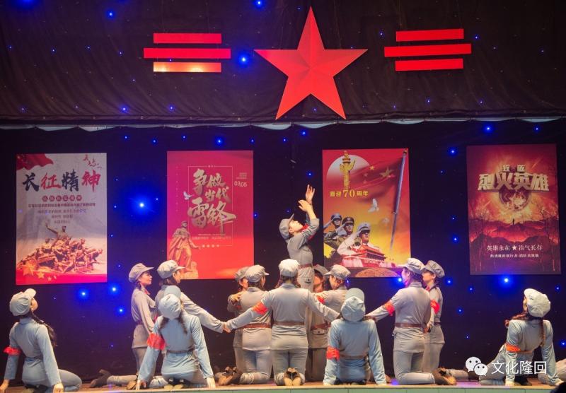 此次晚会由文化志愿者张安兵策划导演,晚会节目形式多样,有歌唱、舞蹈、朗诵、情景剧等共14个节目,精彩纷呈。晚会在中国南北时期的巾帼英雄《花木兰》(舞蹈)拉开序幕,随后带来1931年闻名于世的《红色娘子军》(舞蹈)、1934年举世震惊的《长征》(朗诵)、1942年小英雄《王二小》(舞蹈)、歌颂毛主席共产党《东方红》(情景剧)、歌颂红军战士《闪闪红星》(舞蹈)和《十送红军》(歌舞)、家喻户晓的《雷锋》(舞蹈)、当代险难中的救护神《消防英雄》(舞蹈)、人民警察主题曲《少年壮志不言愁》(歌曲)与《芳华》(舞蹈)、激人奋进的《当那天来临》(舞蹈)和《义勇军进行曲》(舞蹈),最后在昂扬励志的《歌唱祖国》大合唱中画上圆满句号!