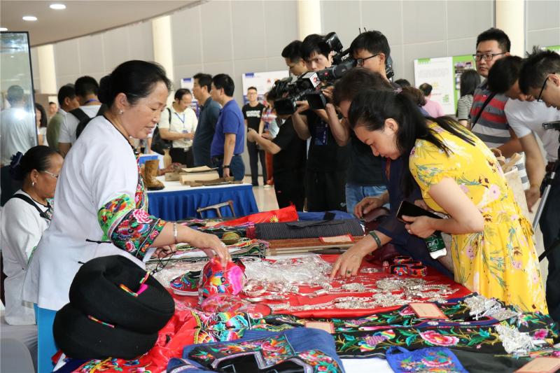 宝庆竹刻、侗锦服饰、苗族银饰、醴陵陶瓷……省文化馆大厅里,来自全省各地的非遗项目和传统工艺,吸引了众多市民的目光。大家驻足停留,不时向非遗传承人学习请教,体验非遗的独特魅力。