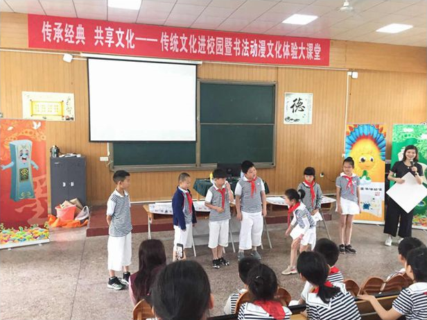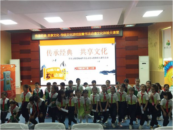书法动漫走进校园,“笔墨纸砚”传承经典。日前,由湖南图书馆主办开展的“传承经典 共享文化——传统文化进校园暨书法动漫文化体验大课堂”活动落下帷幕,长沙市10余所小学,近3000名小学生参与学习和体验。湖南图书馆党委书记伍艺出席活动。
