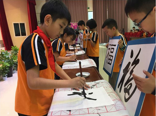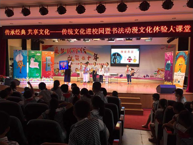 活动在风趣幽默的中国儿童书法动画片中拉开帷幕,小学生们被动漫视频深深吸引。随后围绕汉字书法的字体演变和基础知识进行了形象表演、互动游戏、知识问答、书法临摹等寓教于乐的体验活动,让师生们感受了传统书法艺术的魅力,增添了孩子们学习探究书法文化的的兴趣。