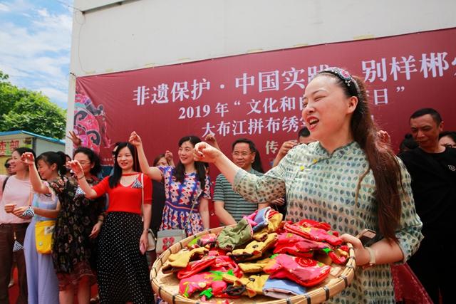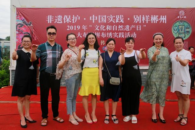 为传承和弘扬郴州市优秀传统文化,提高市民的非遗保护意识,宣传2019年文化和自然遗产日活动“非遗保护 中国实践 ”的主题,6月6日,在文化和自然遗产日、端午节来临之际,郴州市非物质文化遗产保护中心组织苏仙区、北湖区非物质文化遗产保护中心到省级非物质文化遗产项目名录“大布江拼布绣”传承基地开展非遗实践活动,体验非遗独特魅力。