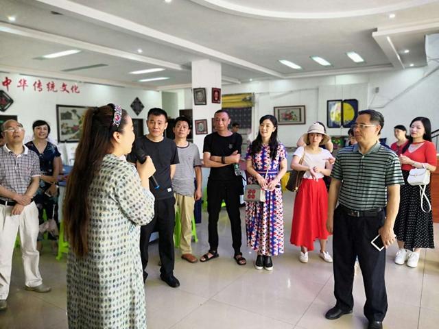 一行30多人来到省级非物质文化遗产保护项目“大布江拼布绣”传承基地,观看大布江拼布绣成果展的同时,省级非遗传承人何娟向大家讲解了拼布绣的历史渊源和永兴大布江拼布绣的传承、发展史。在何娟的指导下,群文工作者们过把瘾体验了非遗手工活动,从手工活动中感受到了中国传统文化的博大精深,增强了民族自豪感,激发群众文化工作者们更好地去传承保护非物质文化遗产。
