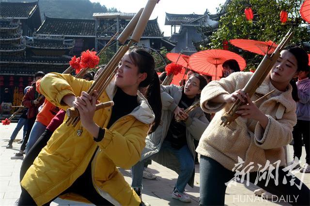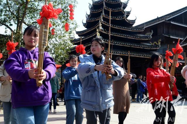 1月30日,湖南省通道侗族自治县皇都村,演员们正在排练芦笙踩堂节目。