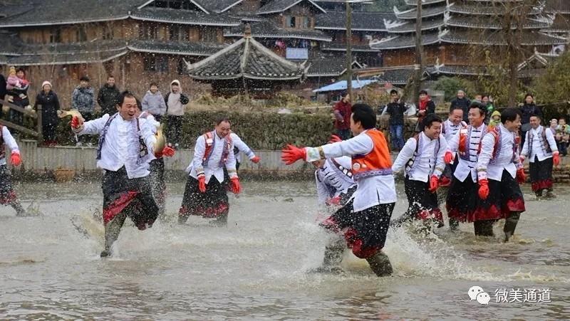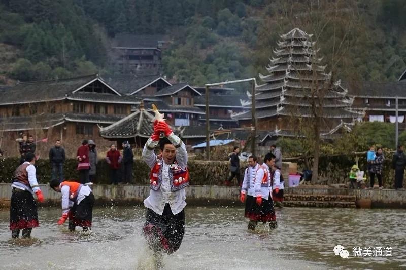 1月18日下午,湖南卫视新春走基层节预热宣传片在坪坦乡皇都侗文化村拍摄侗族民俗活动“抢鱼塘”,场面妙趣横生。