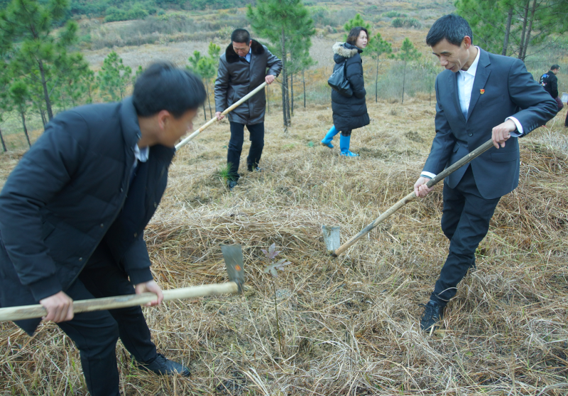 湖南公共文旅云网讯:在春暖花开、生机盎然的二月,为进一步提高文化志愿者的绿化意识和文明素质,2月11日,春节后上班第一天,宁远县文化志愿服务分队在文体广新局领导的带领下来到冷水镇五马村、毛家村山场开展以“创建省级森林城市、建设美丽绿色宁远”为主题的义务植树活动。当天,共种植湿地松、枫香、油茶、小樟树等各类树苗1千余株,完成造林20余亩,为美丽绿色宁远又添上一抹新绿。