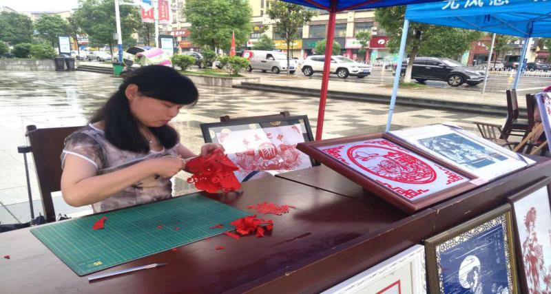 活动现场“挖掘非遗,传承文化”“推动非遗传统工艺振兴,展现见人见物见生活,见证美好新时代”等宣传标语鲜红醒目。上午8时,云溪区的传统手工艺人开始纷纷亮出出自己的“宝贝”,蛋雕、根雕、剪纸、绣花鞋垫、嗡琴戏等吸人眼球。