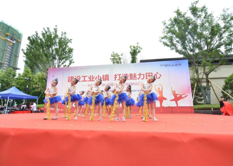韵动株洲网讯:6月21日,田心街道办事处在美的雪峰山·壹号举办以“建设工业小镇·打造魅力田心”为主题的欢乐潇湘·田心街道大型文艺活动。泉塘湾社区组织九方制动舞蹈队、清华田心公馆幼儿园分别带来舞蹈《天边的情歌》以及《大眼睛》节目。