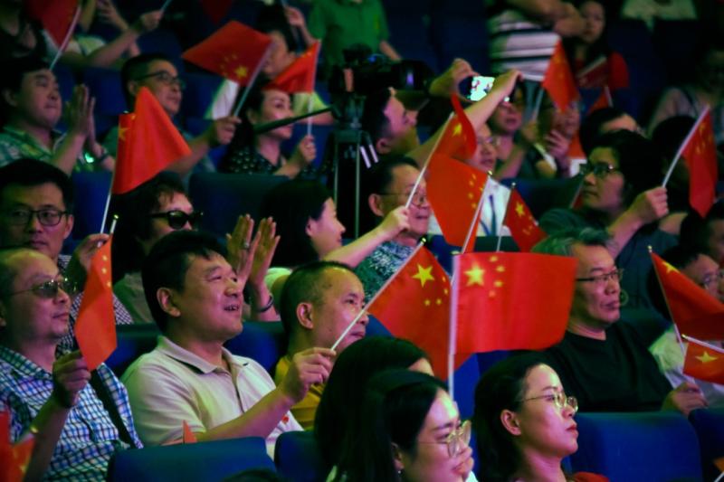 担任音乐会演出的市群星合唱团以独唱、合唱、独奏、弦乐重奏的形式,深情演绎了11首歌曲,既有表现革命者彻底革命精神的《家住安源》、执着于社会主义和共产主义信念的《不忘初心》、海外游子无限深情眷念祖国的《我爱你中国》,也有植入了丰富的世界音乐元素的傣族歌曲《崴萨啰》,还有描绘抗日战争期间东北民众为了生存奋起反抗的英勇事迹、充满血性的民族精神的电视剧《红高粱》片尾曲《九儿》等等。优美动人的旋律,起伏跌宕的演唱,呈现了一场精彩绝伦的红歌盛典。在大气磅礴的《致祖国》歌声中,观众跟随音乐的节奏,不时挥舞着手中的国旗,现场气氛热烈。