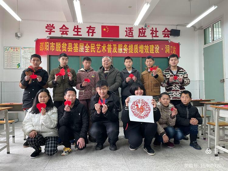 2022年1月11日上午9点,邵阳市脱贫县基层全民艺术普及服务提质增效建设项目活动,走进洞口县特殊教育学校。全国剪纸名家、非遗剪纸传承人钟艺老师为特校的孩子们上了一堂精彩的剪纸课,精心传授中华民间传统剪纸艺术。