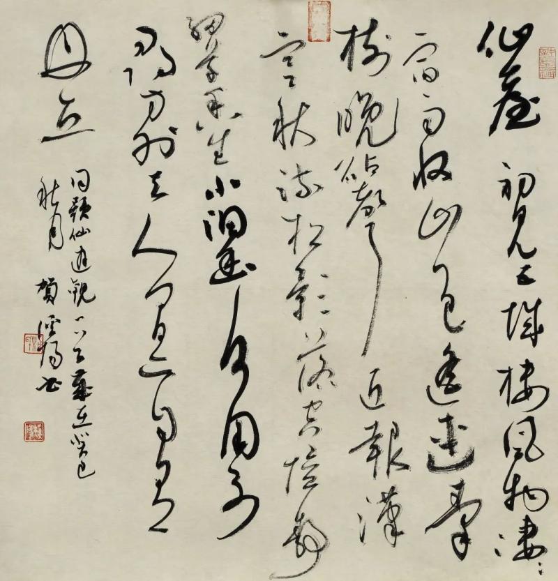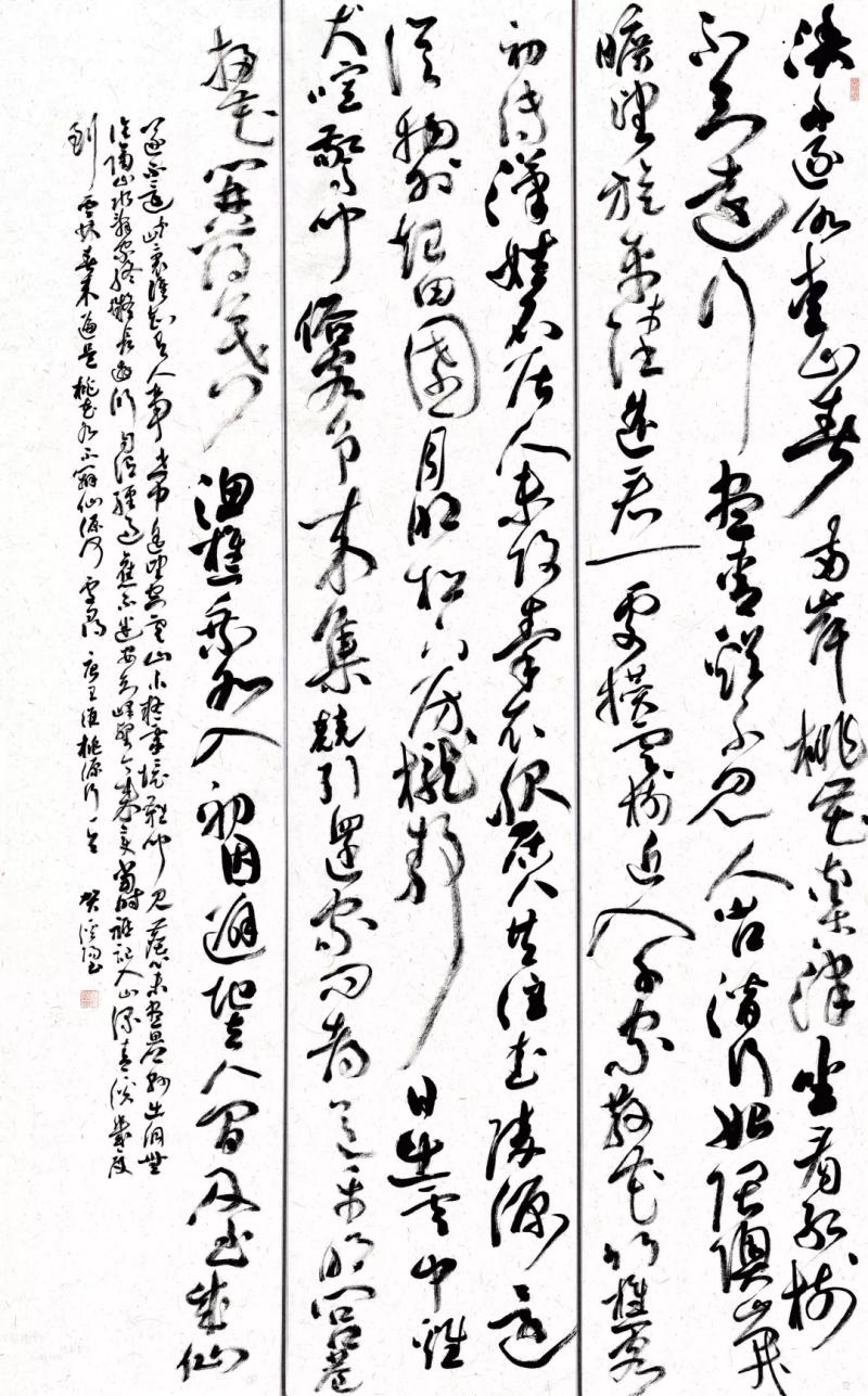 向阳的草书,通过线条的流动和笔触的跳动,饱含着一种澎湃的激情。这是一种乐观豁达的人生态度,是人生历练后的选择,内心的奔涌,焕发出一种能量自然会给艺术创造力增添张力与色彩。有了丰富的人生感悟,人生才有色彩,艺术才有生命。