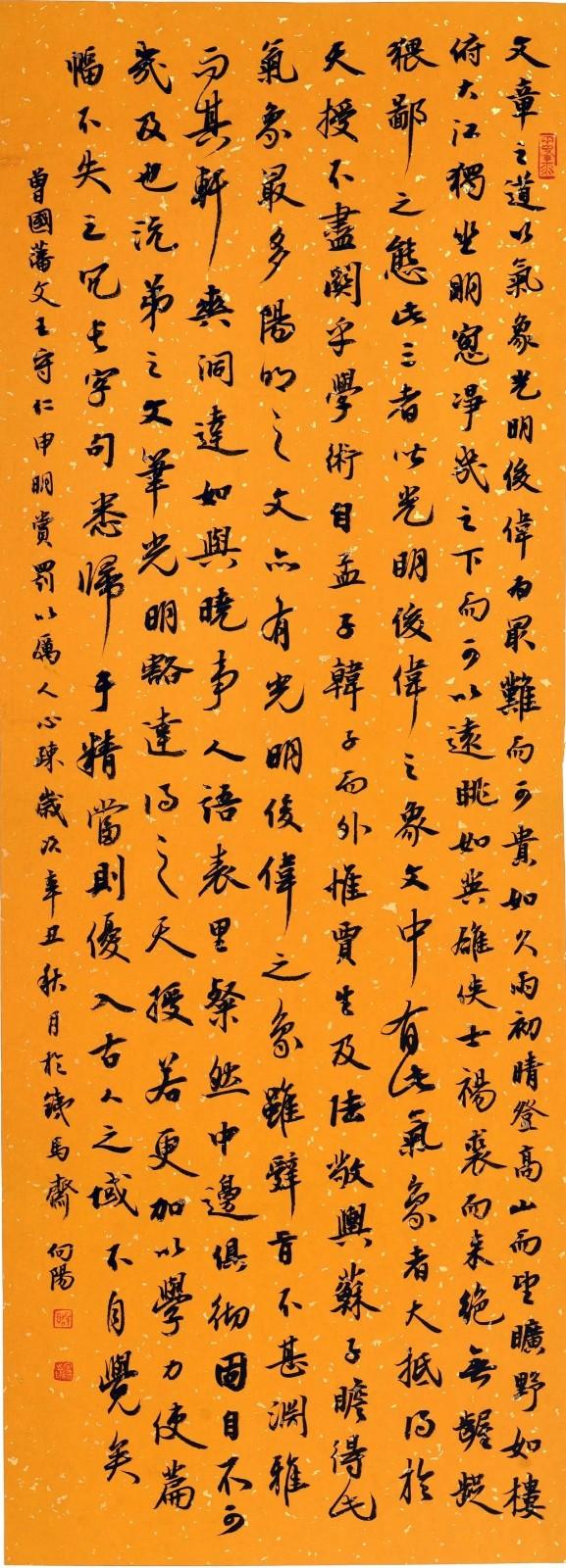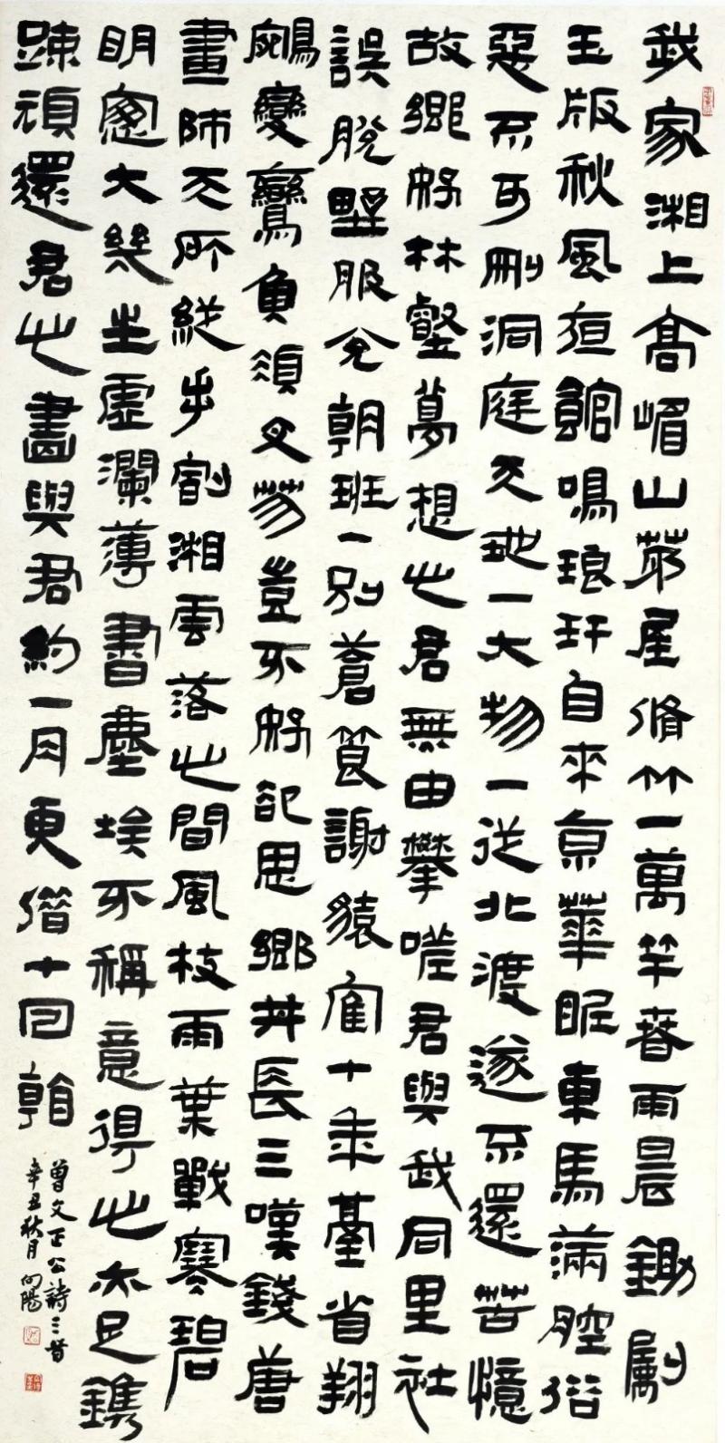 最近读到陈丹青的一段访谈,在谈到木心及其作品时,陈丹青说:“但当他一开口、一下笔,文脉还是1949年以后的,或者是80年代以来的。”这句话我很认同,大凡文人之作品,正如艺术家之创作,文脉的印迹应该是鲜明的。站在贺溪阳书法作品前,我就习惯揣摩其文脉之渊源。