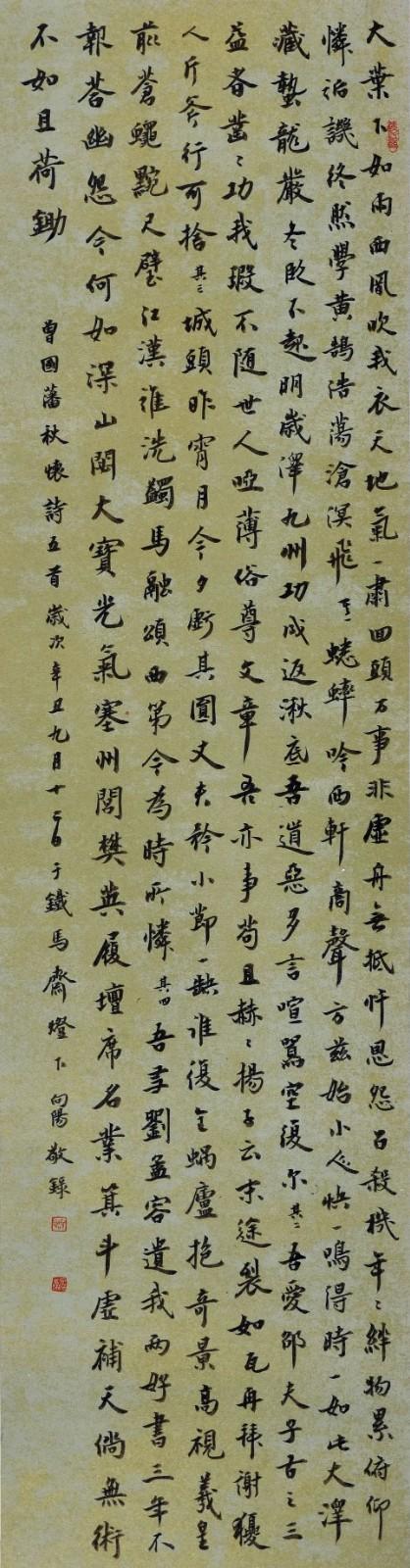 溪阳无疑是个善书者,溪阳是个追梦人。初夏的一个雨夜,雅聚一斗室,兄弟们泡着茶,促膝闲聊。溪阳谈到了自己的书法之途,未来走向……这就是溪阳,温和中还有一种坚定。琴心剑胆,文脉随行。那一刻,我似乎看到了溪阳前行的背影,那是一道永远牵引我眼光的美丽风景!