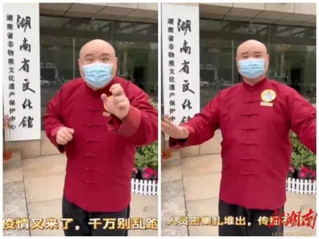 “疫情又来了,千万别乱跑。人员密集扎堆处,传播不得了。要想不得病,口罩要戴好。你戴我也戴,一个都不能少……”由省文旅支援服务总队快板演员胡聪俊创作的快板《齐心抗疫》朗朗上口,便于记忆。快板、诗歌、歌曲、健康操……湖南文旅支援服务总队中的文艺骨干各展所长,把百姓喜爱的艺术形式通过短视频的方式传播,宣传防疫知识,为齐心抗疫凝聚力量。