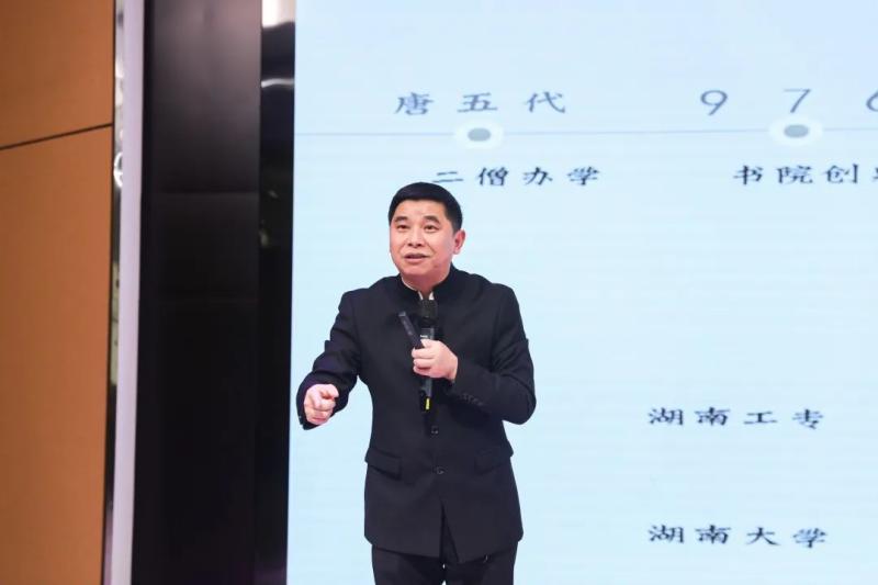 讲堂是岳麓书院的核心区域,集中体现了书院的教育精神。李教授主要讲述了讲堂中“两匾一记”所蕴含的重要思想。“两匾”指的是清朝康熙帝所赐“学达性天”匾及乾隆帝所赐“道南正脉”匾,集中体现了书院的学术追求和价值理念。“一记”就是张栻所作的《岳麓书院记》,其中最重要的教育理念就是“传道济民”。李教授指出“传道”是传授孔孟之道或知识学问,“济民”就是救助、服务百姓。这种精神体现的是“知行合一”,也展现出湖湘文化中的经世致用特征。更为重要的是,“传道济民”对于“霸蛮”的湖南人来说有着重大意义,主要表现在两方面:“传道”改变了湖南人蛮的一面,一些有勇有谋、有胸怀格局的湖南人兴起;“济民”让有些湖南人关注现实和民生,做到经世致用,成为英雄、豪杰。可以说,岳麓书院精神改变了很多有知识、霸蛮的湖南人的人生轨迹,像曾国藩、左宗棠等人一样成为杰出人才。