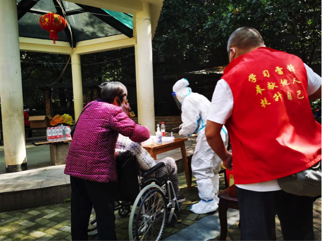 友谊社区,志愿者协助行动不便者开展核酸检测