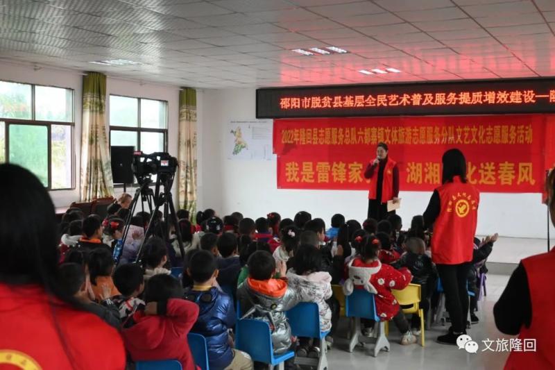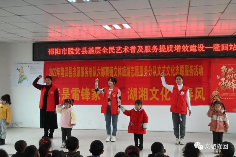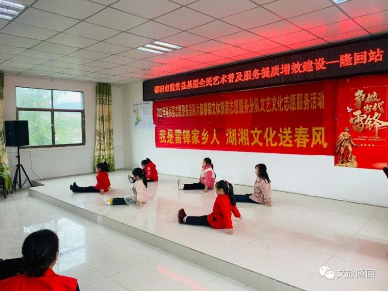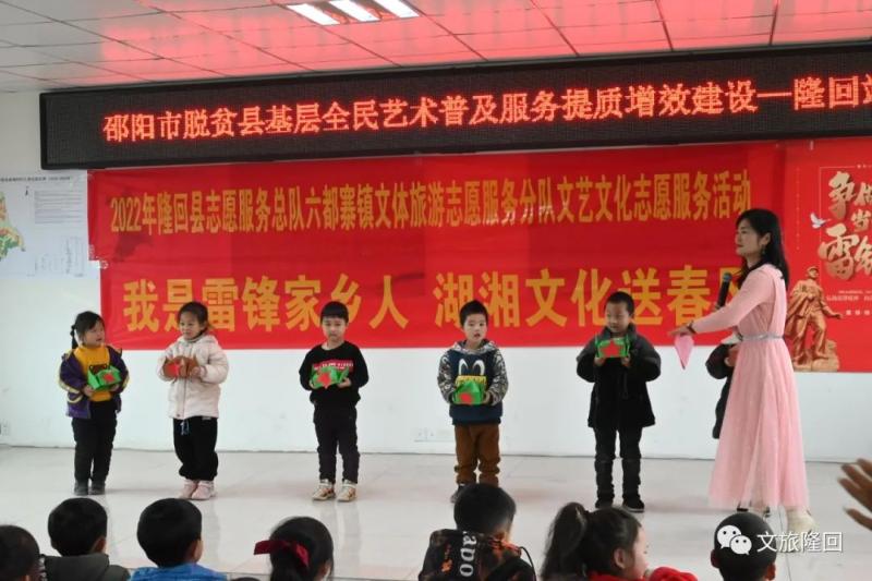 文艺表演、介绍雷锋事迹、讲述雷锋故事,教唱雷锋歌曲……3月4日,张家铺村活动中心内洋溢着欢声笑语,邵阳市脱贫县基层全民艺术普及服务提质增效建设项目团队及六都寨镇文体旅游志愿服务队张家铺村文旅志愿服务分队20余名志愿者一起为留守儿童送温暖,拉开“我是雷锋家乡人,湖湘文化送春风”学雷锋文体旅游志愿服务月活动的帷幕。