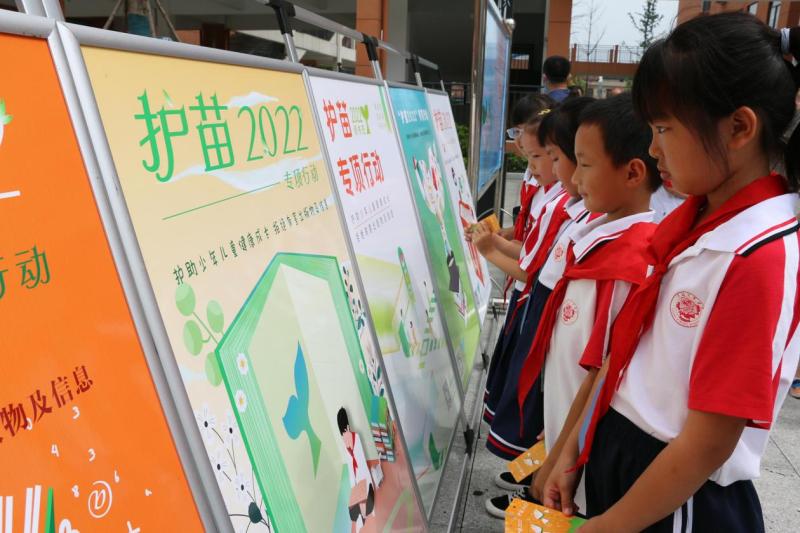 活动中,大家观看了护苗网络安全课、中华传统文化阅读推广活动宣传片,师生代表宣读绿书签行动倡议书,全体学生集体宣誓。随后,县委宣传部常务副部长胡斌宣布活动正式启动。文旅志愿者担当“护苗行动”宣传员,通过张贴护苗海报,向同学们发放绿色书签,带领大家参观中华传统文化百部经典图片展,引导学生增强辨别是非和自我保护能力,学会文明阅读、绿色阅读。启动仪式后,中华传统文化百部经典图片展还将在县城区其他各中、小学陆续展出。