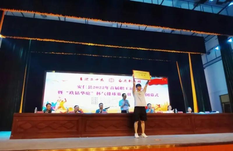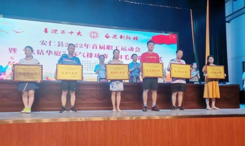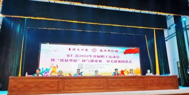 2022年6月23日晚,安仁县首届职工运动会暨“玖钻华庭”杯气排球赛、羽毛球赛在县一中体艺馆举行闭幕仪式。县委副书记、县委政法委书记黄希惠,县委常委、县委宣传部长李敏波,县人大副主任、县总工会主席喻志坚,县政协副主席张苏丽等县领导出席闭幕式,参加闭幕式的人员还有44支气排球参赛队、20支羽毛球参赛队领队及队员。