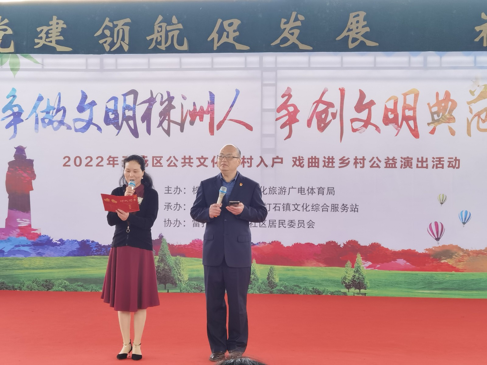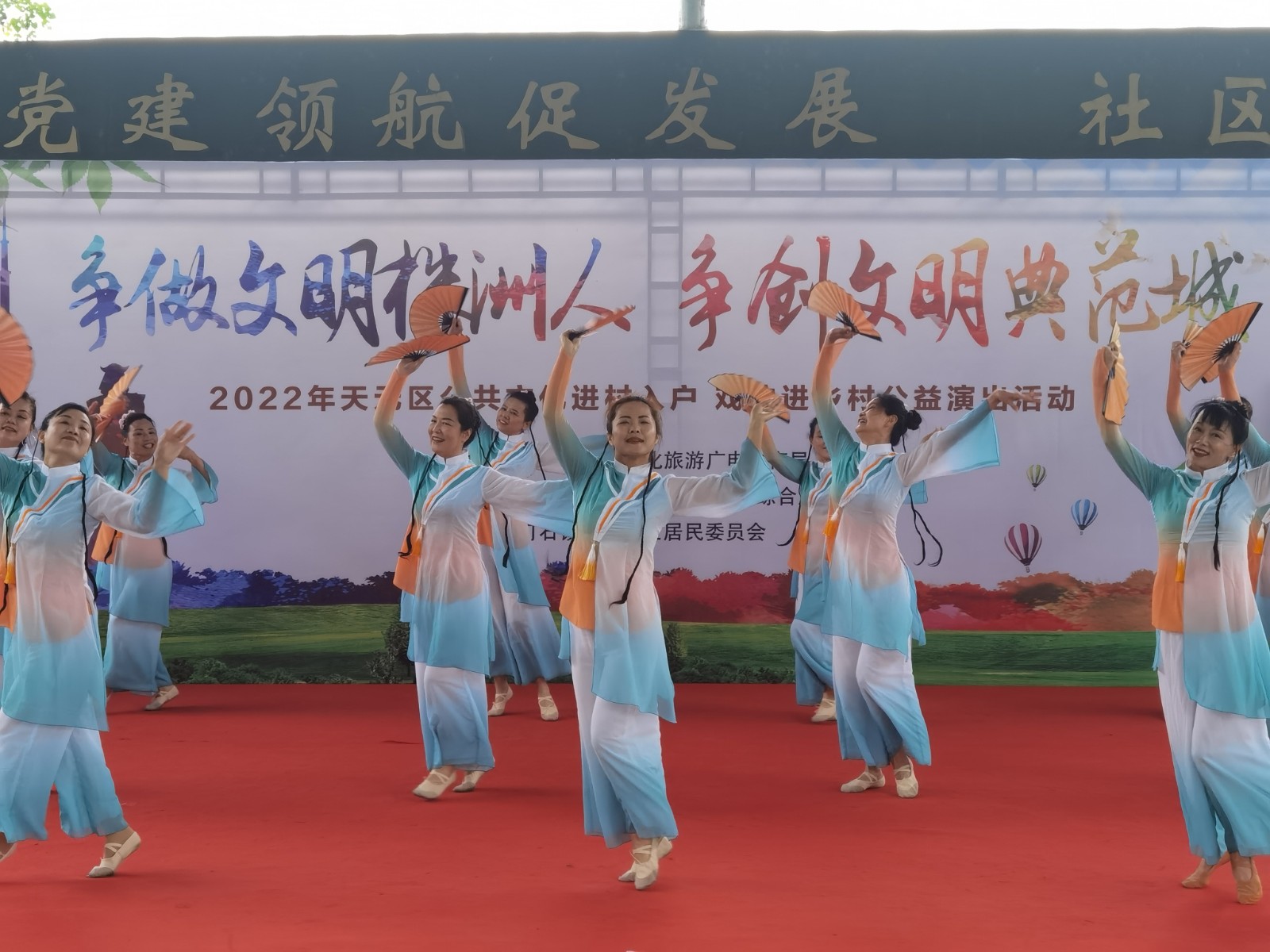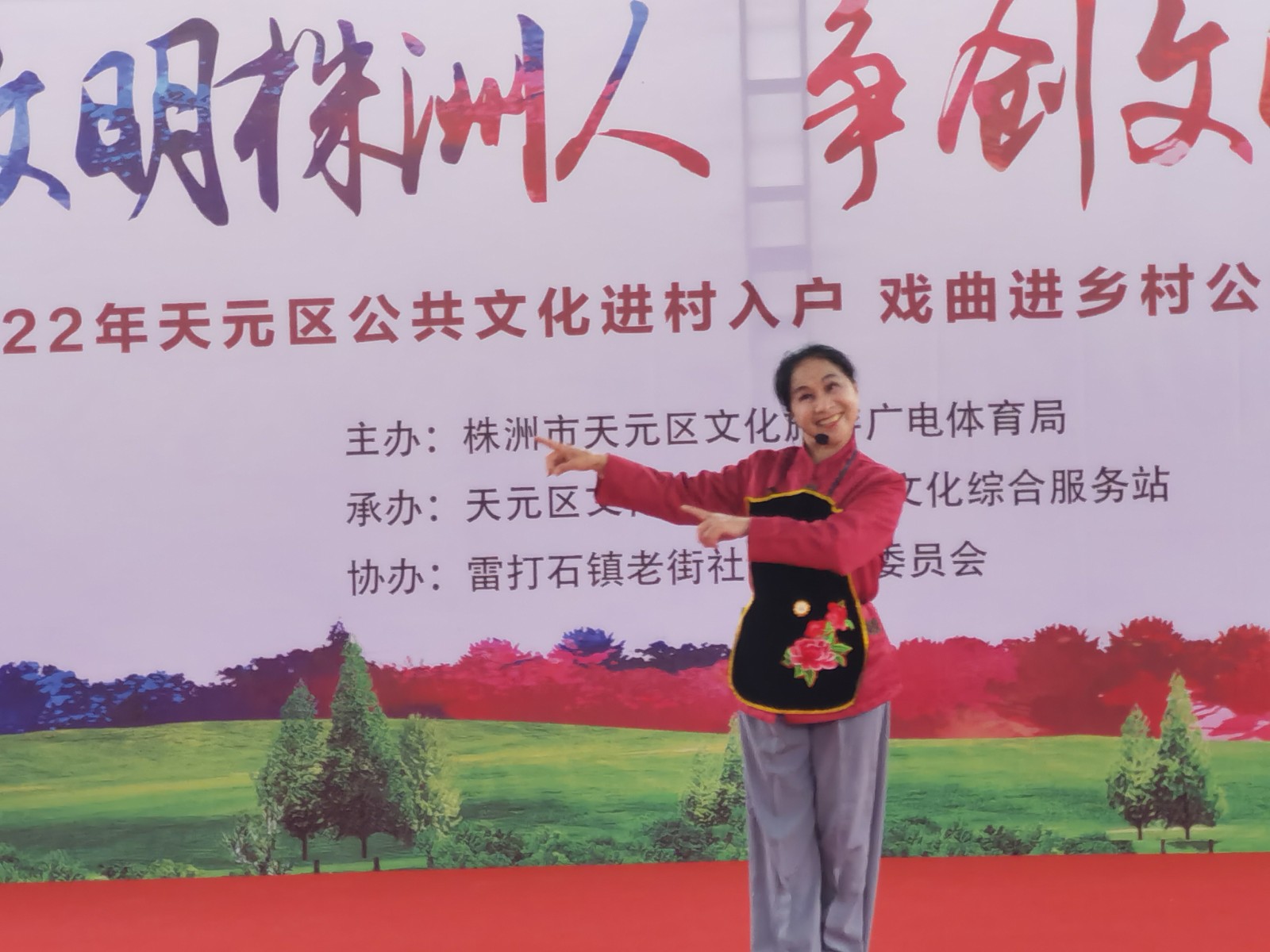 天元区文化旅游广电体育局、天元区文化馆于2022年4月29日开展“争做文明株洲人 争创文明典范城”2022年天元区公共文化进村入户 戏曲进乡村公益演出活动,演出地点在天元区雷打石镇老街社区,本次演出在天元区风景线艺术团的大型舞蹈《绽放的青春》拉开帷幕,整场演出活动包含舞蹈、快板、二胡、花鼓戏、小组唱等12个精彩节目!送戏曲乡进乡村还将定期持续开展,紧密围绕区委、区政府的中心工作为主题进行宣传,同时将文化馆创作的经典剧目与乡镇百姓自己表演的节目相结合,相互促进,互相交融,将“戏”真正送到街头巷尾、田间地头,打通了服务群众的“最后一公里”。将丰富的精神食粮送到百姓家门口,活跃基层群众的精神文化生活,切实增进广大群众的获得感和幸福感。