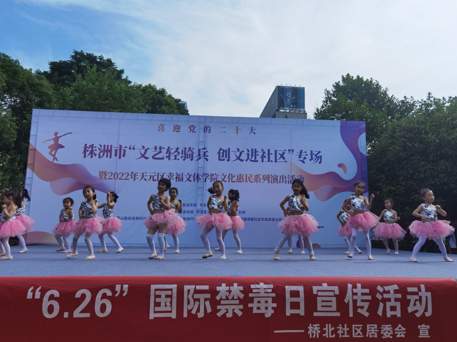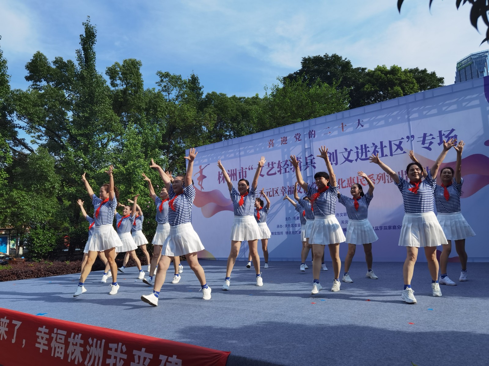 近日,株洲天元区文旅广体局连续开展“文艺轻骑兵 创文进社区”十场主题活动!结合区委、区政府中心工作,包含“创文宣传”、“反诈宣传”“禁毒宣传”“应急安全知识宣传”“健康知识宣传” 等主题开展的2022年天元区幸福文体学院文化惠民演出活动。密切联系驻扎社区的工作队以及社区工作人员,加强对社区居民朋友的知识宣传,将群众喜闻乐见的节目送到百姓家门口,让群众在多姿多彩的文化活动中增强文明意识、凝聚文明力量,做文明创建的传播者、践行者、推动者。
