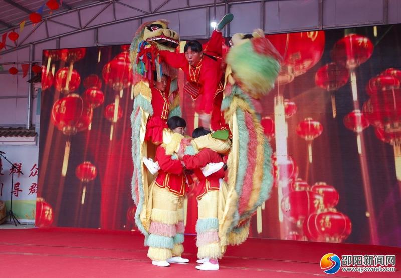 活动首先由“尝新节”非遗传承人举行“摘禾庆丰收、祭拜天地诸神、敬狗、谢牛”等传统仪式,紧接着进入“舞龙耍狮、丝弦、祁剧、旗袍秀、技子拳”等非遗项目表演环节,最后的“老汉背妻、竹杆舞”等互动趣味运动,将活动气氛推向了高潮。