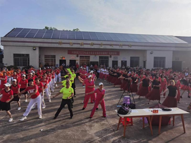 此次广场舞汇演有近百名队员参加,她们整齐的动作、轻盈的舞步和着动感的旋律,舞出了全镇广大人民群众良好的精神面貌及健康和谐的文明新风。