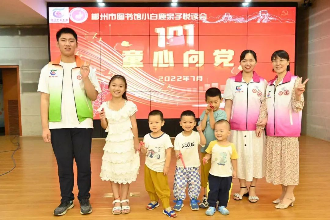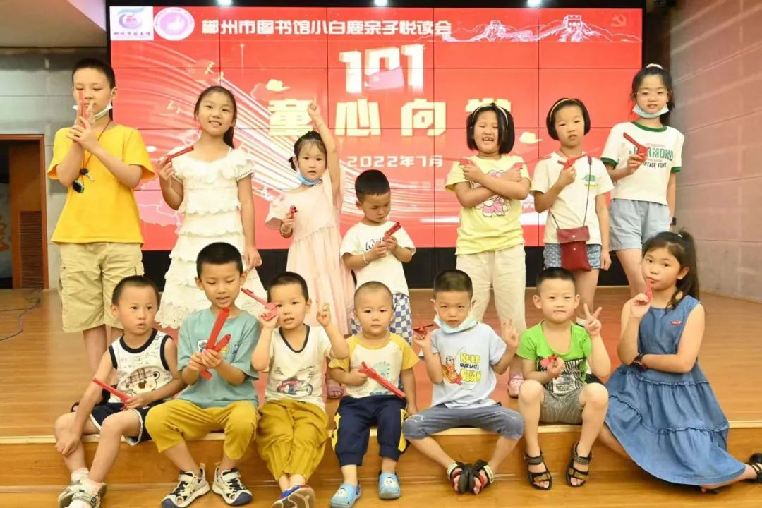 2022年7月9日,郴州市图书馆“小白鹿”亲子悦读会——童心向党·小兵张嘎活动如期举行,30组亲子家庭来到图书馆报告厅参与其中。