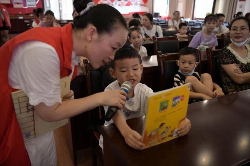 “获得知识的途径有哪些呢?”“我们能从书本上学到哪些知识”“说说你读过的书”,主讲老师以问题的形式引出“读书”的主题,接着与大家分享绘本《书,是什么东西》,书中爱看书的小男孩和他的妹妹,共同演出她所编撰生活中和书同在时的各种写实与想像的情境,带领读者游历在奇异的冒险中,又不时地发出会心的一笑。“那,老师带了各种类型的书,我想请几位读者来说一说它们的用途”、“那到底读书有什么作用呢”、“我们一起来看看少年周恩来说为啥读书”,在主讲老师与现场人员的再次互动中,将活动推向了高潮,“哦,原来书是这么奇妙的东西,有那么多深层的含义,那就让我们一起开启美妙的阅读之旅吧”,六岁的小安桐说。