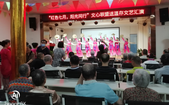 此次是由文心联盟组织的“红色七月阳光同行”活动,红霞艺术团文艺志愿者为该养老院40多位耄耋老人表演舞蹈节目是《抹茶》,节目异常精彩,老人们看得津津有味。老人们一张张慈祥的脸上洋溢着温暖的微笑,他们表示很开心能看到文艺志愿者过来探望和慰问,也感谢志愿者的精彩演出。