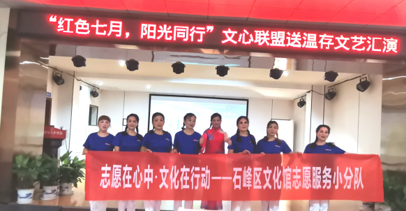 7月9日,石峰区文化馆文化志愿服务分队红霞艺术团文艺志愿者冒着炎热酷暑,来到清水塘养老院开展“志愿在心中·文化在行动”送温暖慰问演出活动。