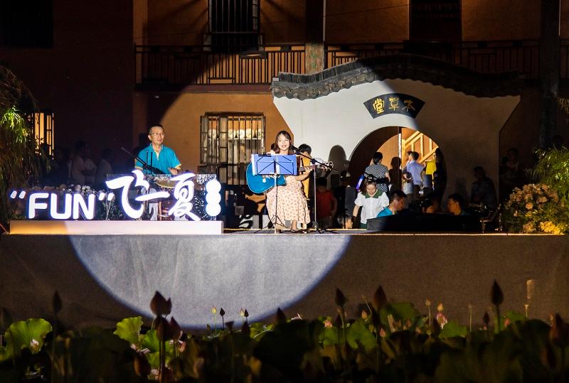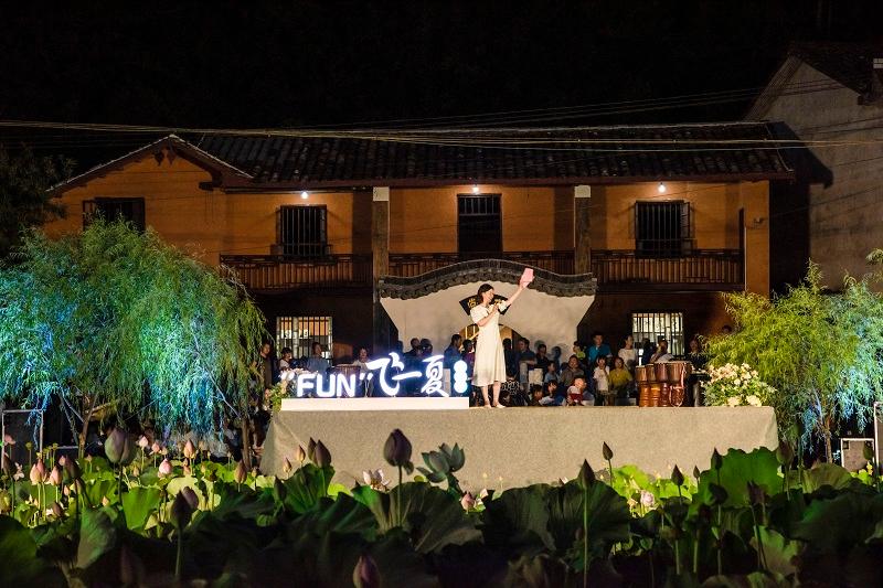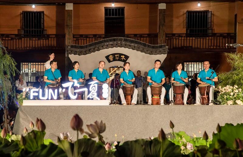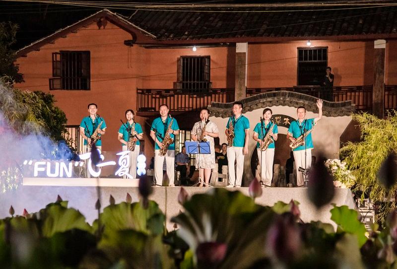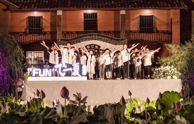 音乐会在新南桥村网红林荫道与荷花池中举办,热情的七月,荷花盛开,芳草夹岸。在这里我们听到了非洲鼓、二胡、古筝、萨克斯、陶笛等乐器的精彩演奏,也看到了来自“FUN”学营的老师与孩子们温馨的结业演出。这场特殊的夏日音乐会吸引了当地300余名观众前来观看,“FUN”学营的学员张同学说:“这是我度过的最有意义的暑假,不仅学习了趣味语文、欢乐英语、智慧数学、手工DIY、近代历史、科学与生活和心理健康等课程,还拥有了从来都没有过的音乐体验。”新南桥村的李书记表示:这场音乐会不仅仅是一次暑期活动,更是“文艺育人”的体现、是文艺扶贫的活标本、是文明新风的传承,也是新南桥村的一种文化坚守。