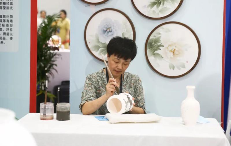湖南展区里,湘绣、醴陵釉下五彩瓷烧制技艺、熏香制作技艺等展位前人气爆棚,传承人们亮出“绝技”引得观展者驻足欣赏,黑茶(茯砖茶)制作技艺传承人现场冲泡黑茶,吸引众多游客前来品茗。