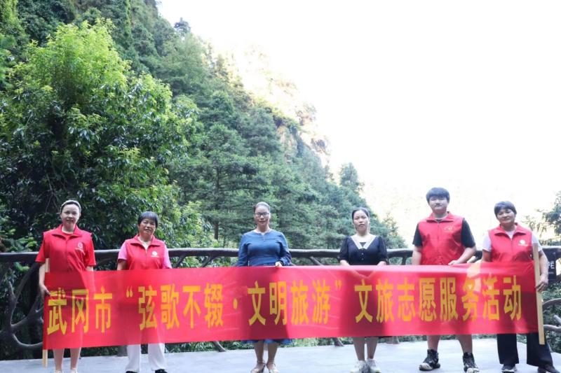 为满足游客的旅游活动需求、提高旅游行业综合服务质量,武冈市文旅广体局结合文旅志愿服务和新时代文明实践工作,组织文旅志愿者参与景区文明引导、游览讲解、质量监督、秩序维护、特殊群体游览帮扶、应急救援等各项服务,形成长期开展的“弦歌不辍·畅游武冈”志愿服务品牌,营造人人愿为、人人能为、时时可为的旅游志愿服务发展环境;利用丰富的旅游资源,开展红色旅游、绿色旅游、文明旅游讲解、党史故事宣讲等特色志愿服务活动,创新旅游志愿服务形式。