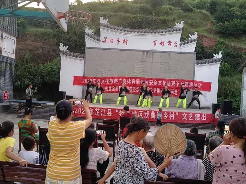 2022年8月5日,芷江侗族自治县文化馆“特困地区戏曲进乡村‘’文艺汇演在大树坳乡柑子坪村火热上演,通过戏曲、小品、舞蹈、音乐等多种民族文化艺术形式给乡亲们带来了一场丰富的视听盛宴,“送戏下乡”是芷江县文化馆多年来一直坚持的文化惠民工程的局部一角,在加快构建公共文化服务体系和完成好政府交办的民生实事中,芷江县文化馆的文化工作始终立足全县、面向基层、服务群众,在如何使百姓的精神文化“丰”起来、惠民舞台“宽”起来、乡村文化“富”起来等方面想办法、出实招、见成效。积极开展“文化为民、文化惠民、文化富民”活动是芷江县文化馆落实和推进群文活动的出发点和落脚点。