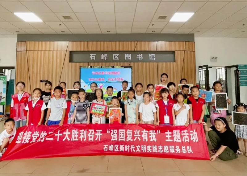 为深入学习贯彻习近平新时代中国特色社会主义思想,喜迎党的二十大胜利召开,充分发挥党的创新理论在示范引领、滋养人心、凝聚力量等方面的积极作用,同时培养儿童青少年爱党爱国情怀,丰富儿童青少年暑期文化生活,让孩子们度过一段快乐、难忘且有意义的假期,石峰区新时代文明实践志愿服务总队携手石峰区妇联、石峰区图书馆特开展青春护航·相约石峰——“微宣讲+暑期文明实践课堂”系列活动。