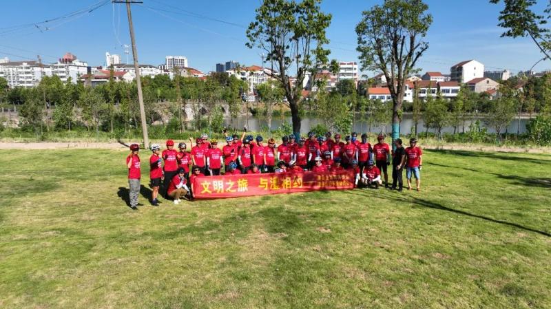 8月13日上午,50余位“骑士”齐聚洗墨池路,他们从此出发,途经护城路、环宇格林小镇、多安桥、八方楼、栗河,沿澧州古城墙,奔赴澧州文庙,用健康环保的骑行践行“文明之旅”。