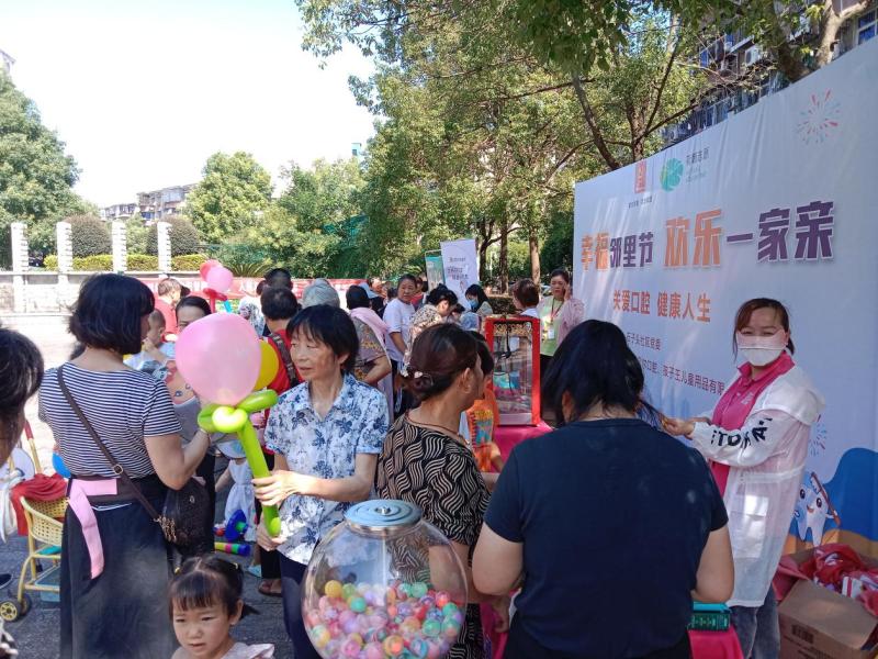 炎炎夏日,为了让广大居民享有健康丰富的精神文化生活,增加邻里之间的情感联系,让孩子们在家门口就能感受到游乐场的欢乐,一边快乐玩耍,一边学习健康知识!7月13日上午,月塘街道文化站联合株洲雅贝尔口腔、孩子王儿童用品有限公司在电力小区内开展了丰富多彩的“幸福邻里节,欢乐一家亲”活动。