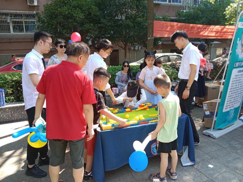 活动现场多个游玩活动,扇子画画、乐高积木、DIY气球制作。同时,社区还邀请了爱心商企孩子王儿童用品有限公司、株洲雅贝口腔为居民提供了测血压血糖、口腔检查等服务,让居民在小区内就能体验到便捷的服务。