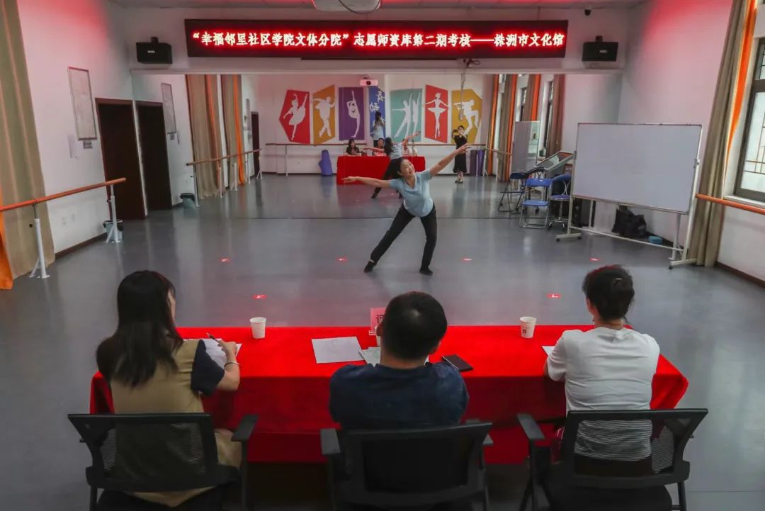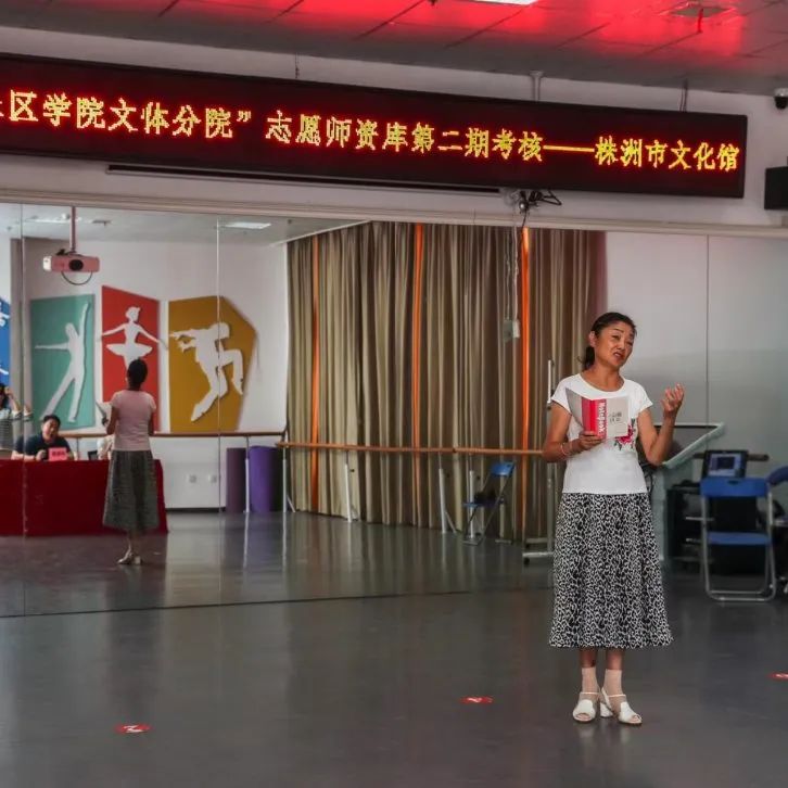 幸福邻里社区学院文体分院志愿服务师资联盟,5月开始面向社会招募,6月份进行了第一期考核。今日上午,幸福邻里社区学院文体分院第二批志愿师资考核在市文化馆二楼1号舞蹈室举行,考核科目种类丰富多样,舞蹈、声乐、口才、走秀、形体、古琴等。市文化馆副馆长熊武、培训部主任吴方、副主任郭红玲担任本次考核的评委。