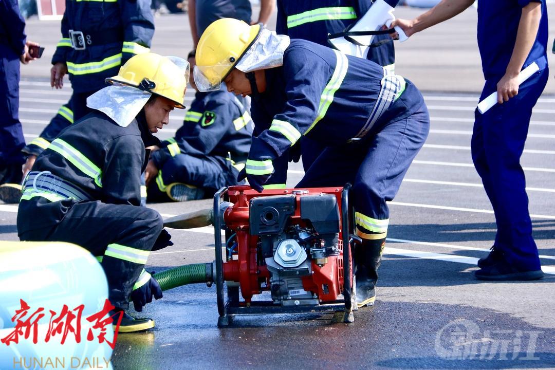 本次比武大赛是由沅江市安全生产委员会主办,市应急管理局、消防救援大队及总工会承办。比赛本着贴近实战原则,主要从手抬机动泵出水操、水罐消防车一车两枪操、破拆救援、水上救援四方面对各支队伍进行综合考评。
