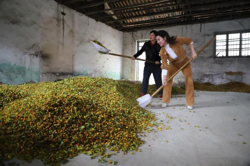 栀子果晾摊。