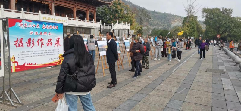 为丰富广大人民群众精神文化生活,推进全民艺术普及,满足老百姓对文化的新需求新期待,以实际行动庆祝党的二十大胜利召开。11月19日,县文化馆在涉江楼广场举办“欢庆二十大 奋进新征程”群众摄影作品展。活动共展出乡村振兴、水文化挖掘、红色资源、绿色发展、古色传承等作品80幅。现场气氛活跃,游客、群众络绎不绝,在推动文化与旅游深度融合、助力白沙景区创4A等方面起到了积极作用。