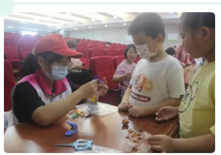 本次手工创作,是让家长们在文旅志愿者的协助下,帮助孩子们制作植物书签。