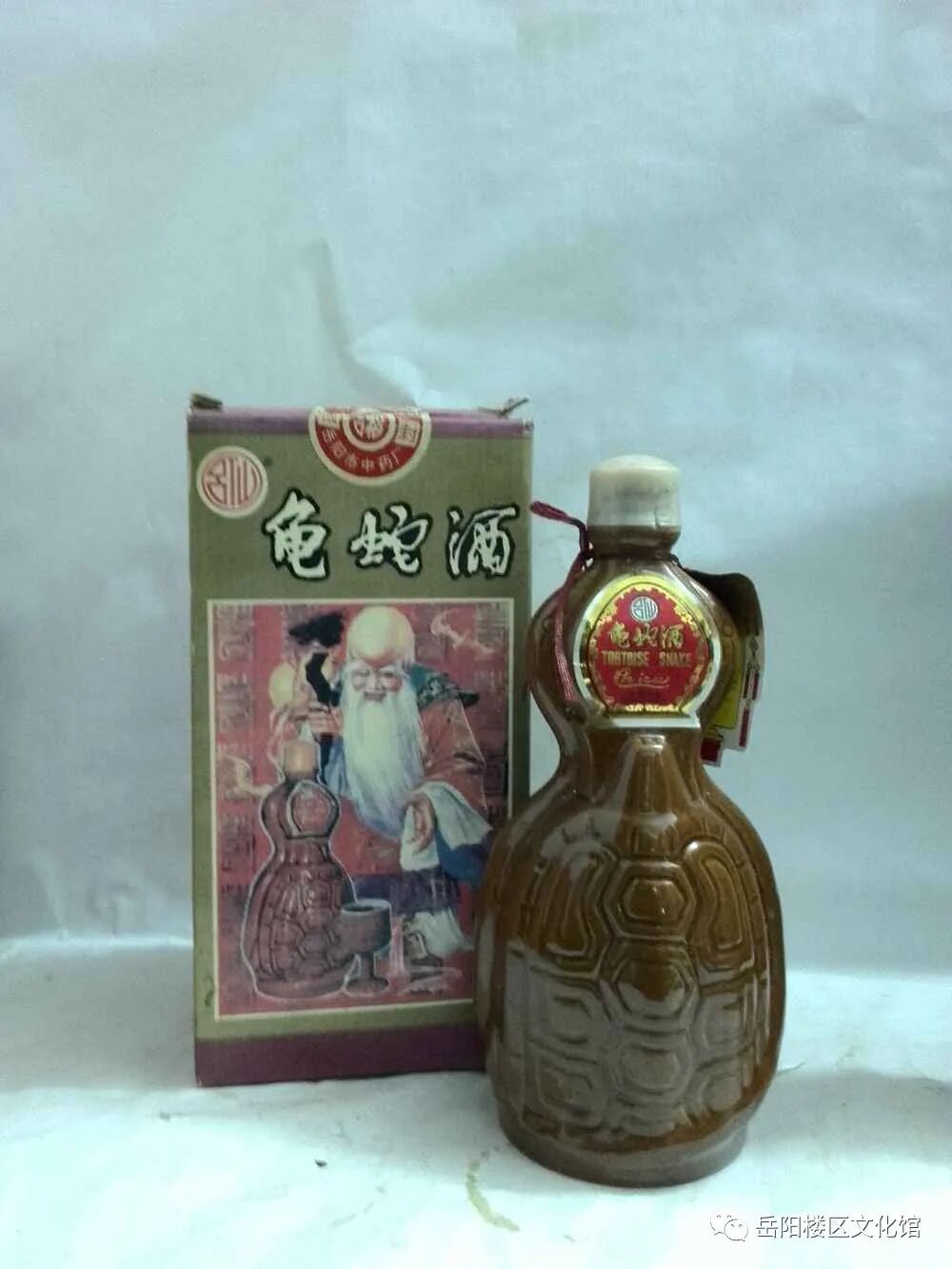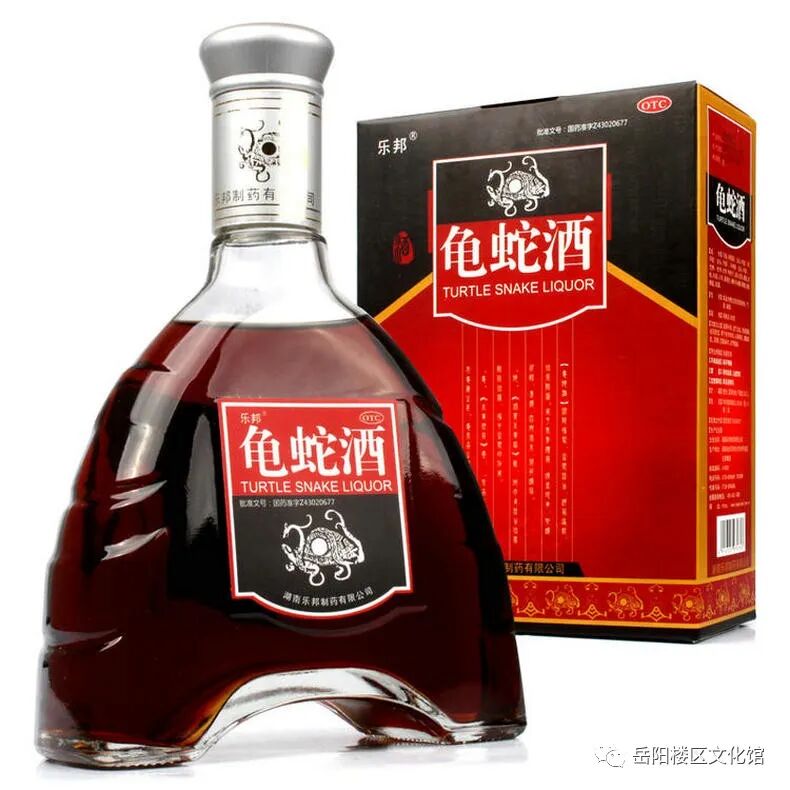 龟蛇酒,顾名思义,就是用龟和蛇泡制而成的药酒。《湖南通志》载:“酒香山在君山,上有美酒数斗,饮者即为仙。”1977年,根据国家外贸部门的要求,岳阳市酿酒总厂决定以“龟蛇酒”命名恢复传统产品——仙酒投入生产。1979年11月批量生产,连续几年荣获省优质产品奖,1988年在首届全国食品博览会上荣获金奖,1991年荣获外经部出口产品金奖,1994年获中国保健精品金奖。并获得国家外经部出口产品免检证书,畅销内陆各省和港澳地区,并出口至东南亚地区多个国家,外销售量占当时湖南省出口酒类的70%。因“龟蛇酒”药用与保健功效明显,受到国内外消费者的广泛好评。