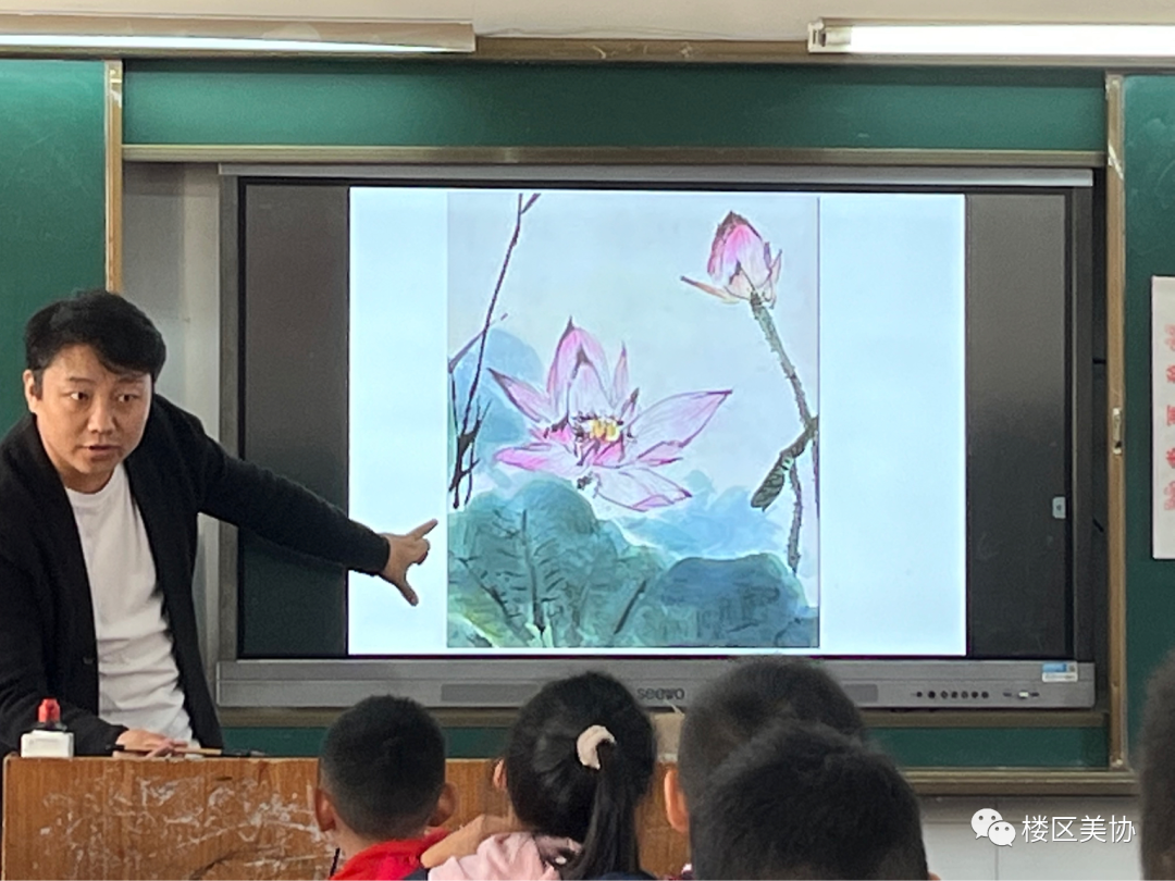 来自区文化馆红马甲市民艺术大学的霍治军老师带来一节生动的公益美术课《写意荷花》,领导及来宾进课堂观摩。霍治军老师做绘画示范,细致讲解作画步骤。学生兴趣浓厚,课堂气氛热烈。