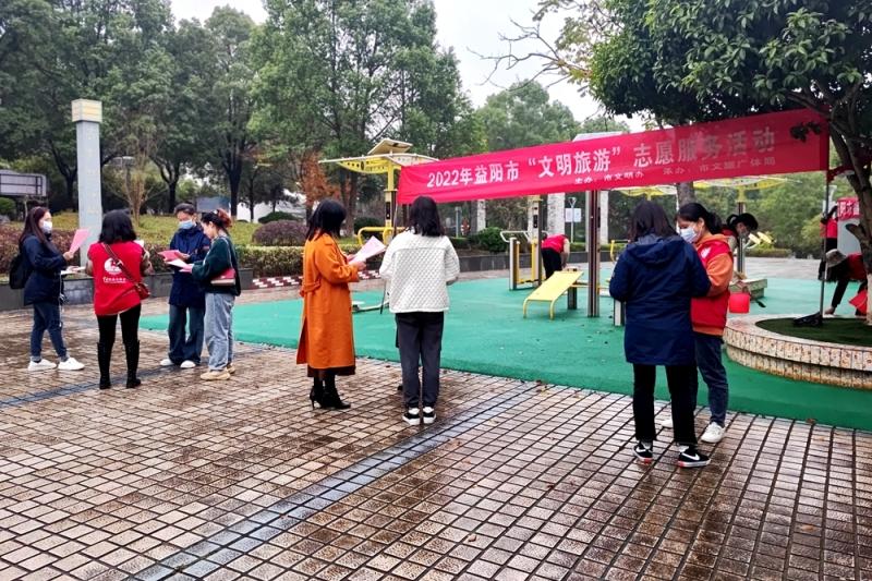 11月28日,益阳市旅行社协会组织会员在益阳奥林匹克公园开展“文明创建全民同心 志愿服务你我同行”文明旅游志愿服务主题活动。