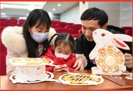 上元良宵,花灯如昼,芳春可赏,月圆人圆事事圆,2023年2月4日,卯兔元宵佳节来临之际,郴州市图书馆“小白鹿亲子悦读会”忠实的读者家庭们携文旅志愿者来到了图书馆3楼报告厅参加“我们的节日·元宵”主题阅读活动,50余人一齐闹元宵,读绘本、赏民俗、猜灯谜、做宫灯……此刻,平安更欢喜。