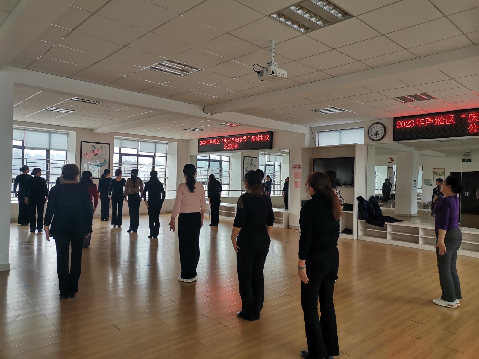 阳春三月,春暖花开。为迎接即将到来的"三八"国际劳动妇女节,3月7日下午,芦淞区文化馆在舞蹈排练厅开展了2023年芦淞区庆“三八”妇女节形体礼仪免费培训班。